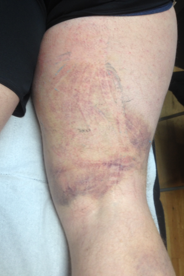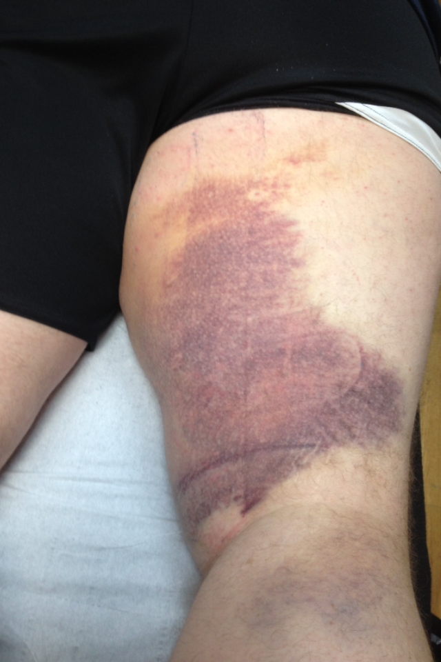 We recently had a rugby player visit the clinic complaining of leg pain. The area of pain turned out to be a massive bruise from a couple of days earlier when another player had landed on him. We first assessed him to see whether the muscle was torn, as the bruising was very severe, before beginning treatment of the contusion. Contusion injuries are extremely common in contact sports, especially rugby and combat sports where collisions are frequent.